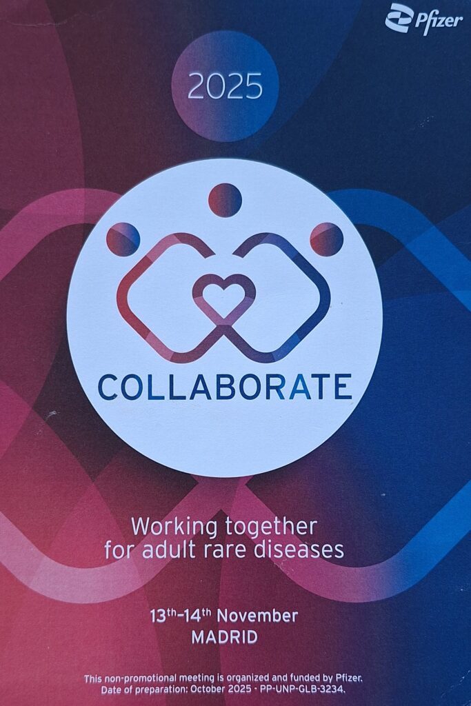 Po raz kolejny zostaliśmy zaproszeni jako Stowarzyszenie do udziału w międzynarodowym spotkaniu organizacji pacjenckich reprezentujących choroby rzadkie, które odbyło się w ramach programu COLLABORATE 2025 w Madrycie. Celem jest wymiana doświadczeń w kwestii organizacji i działalności, ale również wzajemne wsparcie.